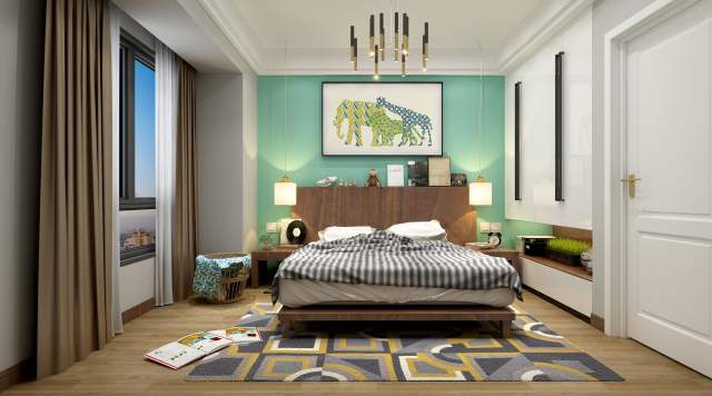 一款比較小清新的臥室裝修,整個臥室裝修以簡單清新的設(shè)計為主題,所以在背景墻顏色的選擇上就偏向了明亮清雅的顏色,墻上搭配的設(shè)計也是相當(dāng)?shù)牟诲e的。
