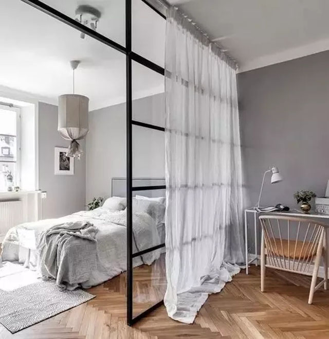 1、利用屏風(fēng)做隔斷