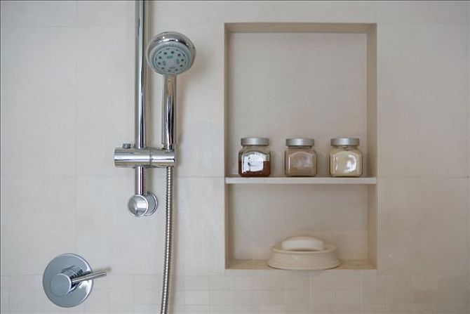 4、衛(wèi)生間一般沒有多余的空間做壁蓋,可以考慮坐下面這種的壁龕,平時(shí)放放洗浴用品什么非常方便!