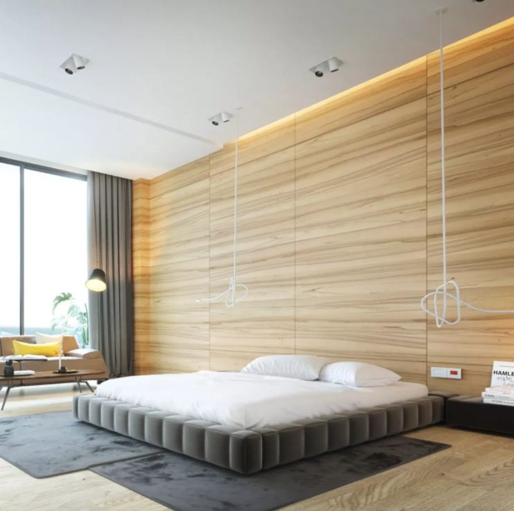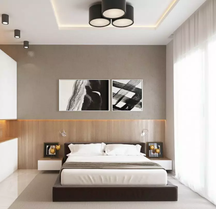 臥室如果高度不夠,不建議設計吊頂,因為會給人一種累贅感,但是如果高度適宜,可以打造一個比較簡易的吊頂,這就要求吊頂每個設計面板的接縫一定要嚴密。