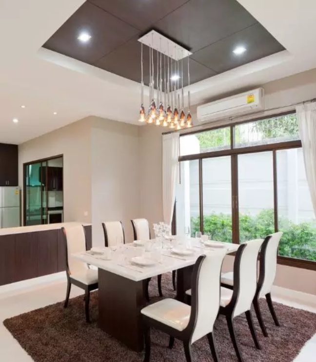 在選擇餐廳吊頂?shù)臅r候,建議選擇十分容易清潔的扣板材料。餐廳是我們進餐的地方,久而久之餐廳吊頂上會沾一些水蒸氣和油污,時間長了會滋生細菌,所以這里的吊頂易清潔很重要。