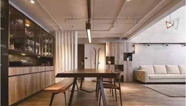 設(shè)計者將餐廳經(jīng)過重新配置,拉大了使用尺度,同時也能滿足男屋主愛下廚,能經(jīng)常邀請三五好友到家中做客、享受料理的需求。除了大尺度的餐廳、餐桌之外,同時也規(guī)劃了一座大面的餐具展示柜,一改過去將杯盤拾起的概念,而是將這些具鮮明色彩、特殊造型的杯盤一一展現(xiàn)出來,不僅輕松完成收納,家的生活感表露無遺。