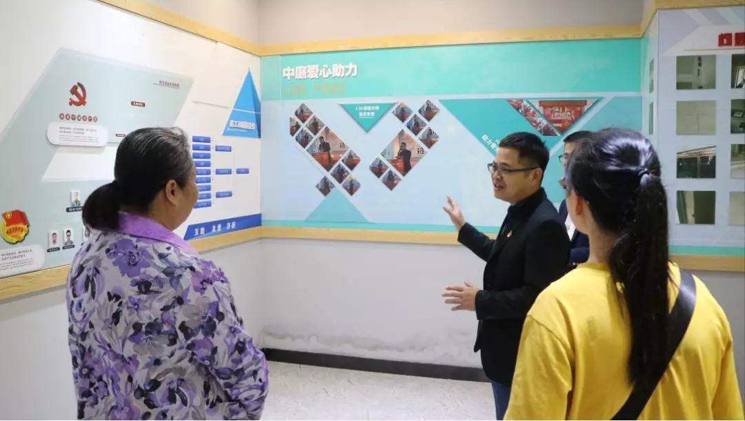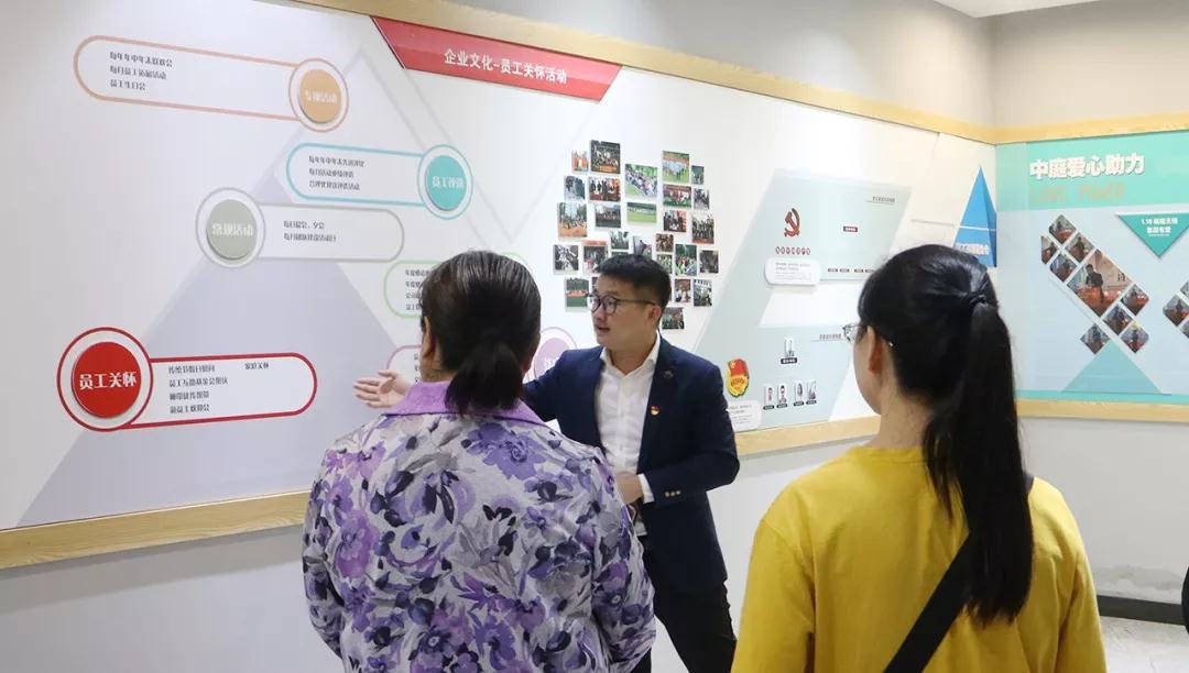 ▲會(huì)前集團(tuán)領(lǐng)導(dǎo)帶領(lǐng)社區(qū)黨委許書記等人參觀集團(tuán)文化長(zhǎng)廊